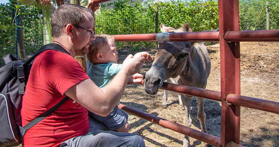 Young Logan being introduced to some of the more domesticated critters at the Trail